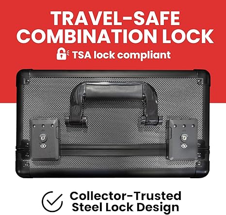 -Protect Your Collection Anywhere: Safeguard up to 90+ graded cards with dual combination locks and a TSA-approved travel lock. The durable aluminum frame and hard EVA foam lining keep your trading card storage secure in a sturdy, portable trading card storage box, perfect for travel or display.